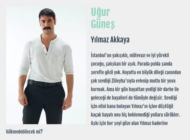 İstanbul'un yakışıklı, mütevazı ve iyi yürekli çocuğu, çalışkan bir aşık. Parada pulda şanda şerefte gözü yok. Hayatta en büyük dileği canından çok sevdiği Züleyha'sıyla evlenip mutlu bir yuva kurmak. Ama bir gün hayattan yediği bir darbe ile geleceği de hayalleri de tümüyle değişir. Sevdiği için elini kana bulayan Yılmaz'ın içine düştüğü kaçak hayatı onu hiç beklemediği yollara sürükler. Aşkı için her şeyi göze alan Yılmaz kaderine hükmedebilecek mi?