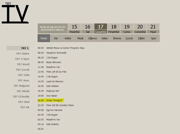TRT 1 ekranlarında her çarşamba günleri izleyici karşısına çıkan Diriliş Ertuğrul'un yeni sezon tarihi henüz belli olmadı. TRT 1'in bu hafta çarşamba günü yayın akışına Diriliş Ertuğrul'u eklemesi ile dizinin bu hafta başlayıp, başlamayacağı merak edildi. Ancak dizinin özel bölümünün ekrana gelmesi bekleniyor. Yeni sezon tarihi ile ilgili açıklama geldiğinde haberimizin içeriğinde yer alacak.