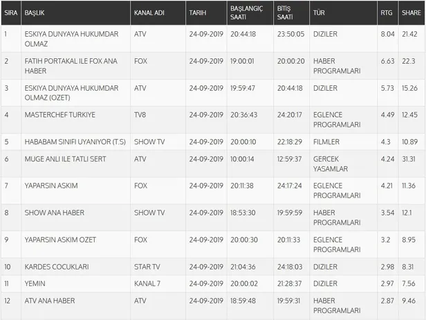 24 EYLÜL REYTİNG SONUÇLARI (AB)