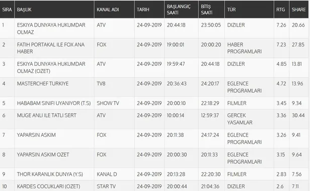 24 EYLÜL REYTİNG SONUÇLARI (TOTAL)