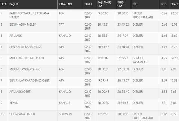 2 EKİM REYTİNG SONUÇLARI NASILDI?