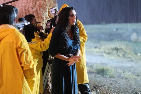 Hercai 21. son bölümdeki Reyyan ve Miran'ın yağmur sahnesi çok konuşuldu. Ekranda fırtına gibi esen Hercai, bu defa yerini yağmura bıraktı. Geçtiğimiz hafta yayınlanan bölümde Miran ve Reyyan'ın yağmur altında geçen sahnesi için yapım ekibi zoru başardı. 5-6 saat boyunca yağmurda kalan oyuncular, ateş başında battaniyelere sarılı şekilde ısınarak bir sonraki sahnelerine hazırlandılar. İşte Hercai 21. son bölüm ve dizi setinden kareler...