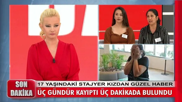 Müge Anlı, Atv canlı yayınında bir ailenin daha yüzünü güldürdü. Anne Mesude Baştürk ve abla Damla Baştürk, 14 Ekim günü İstanbul Beylikdüzü’nde kaybolan 17 yaşındaki E.B.‘yi aramak için Müge Anlı ile Tatlı Sert programına katıldı. Çarşamba günkü yayının hemen ardından ise anne ve ablayı mutluluğa boğan haber geldi. Müge Anlı 3 gündür kayıp olan liseli kızı 3 dakikada buldu.