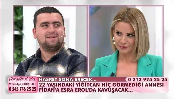 . Esra Erol, hafta içi her gün birbirinden farklı hikâyeleri Atv ekranlarına taşımaya devam ediyor. Yiğitcan Düzcü, 22 yıldır hiç görmediği annesini bulmak için Adana'dan kalktı İstanbul'a geldi, Esra Erol’dan yardım istedi. Anne özlemi içinde büyüyen Yiğitcan “Beni anneannem büyüttü. Annem neredeyse çıkıp gelsin ona bir kez olsun sarılmak istiyorum” diyerek gözyaşları döktü. Yiğitcan Düzcü ve hiç görmediği annesi Fidan Hanım, 22 yıl sonra birbirine Esra Erol’da programında kavuştu.