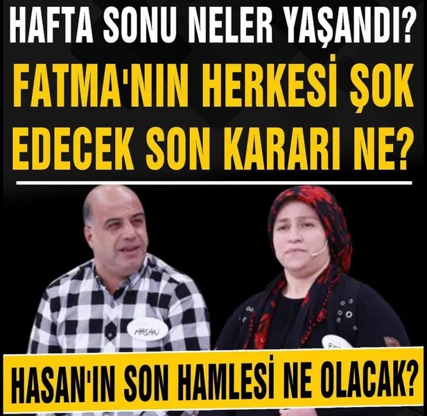 Hafta sonu neler yaşandı? Fatma'nın herkesi şok edecek son kararı ne? Hasan'ın son hamlesi ne olacak?
