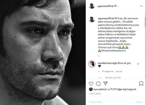 Bir Zamanlar Çukurova son bölümde ölerek diziye veda eden Uğur Güneş'in, veda sahneinin ardından sosyal medyadan paylaştığı notu herkesi daha çok üzdü.