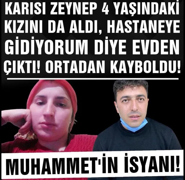 Karısı Zeynep 4 yaşındaki kızını da aldı, "hastaneye gidiyorum" diye evden çıktı, ortadan kayboldu! Muhammet'in isyanı!
