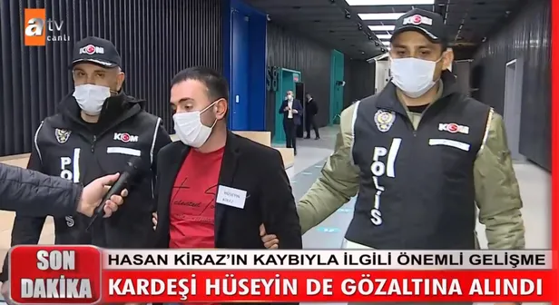 Hasan Kiraz olayında son dakika gelişmesi! O isim Müge Anlı canlı yayınında gözaltında alındı...23 yaşındaki Hasan Kiraz'ın şüpheli kaybında yaşanan son dakika gelişmesi izleyiciyi ekran başına kilitledi. Trafik kazası geçiren Hasan Kiraz'a sigorta şirketi tazminat ödemişti. Ancak sigorta parası ve Hasan Kiraz bir anda 13 Mayıs 2017 tarihinde ortadan kayboldu. Muğla Dalaman’da kaybolan Hasan 'Kiraz bulundu mu?' sorusunun yanıtı merak ediliyordu. Müge Anlı Hasan Kiraz olayında son dakika gelişmesini aktarırken, canlı yayına gelen emniyet güçleri Hasan Kiraz'ın kardeşi Hüseyin Kiraz'ı da gözaltına ald ve böylece gözaltı sayısı 15'e yükseldi.