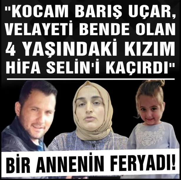 "Kocam Barış Uçar, velayeti bende olan 4 yaşındaki kızım Hifa Selin'i kaçırdı" diyen bir annenin feryadı.