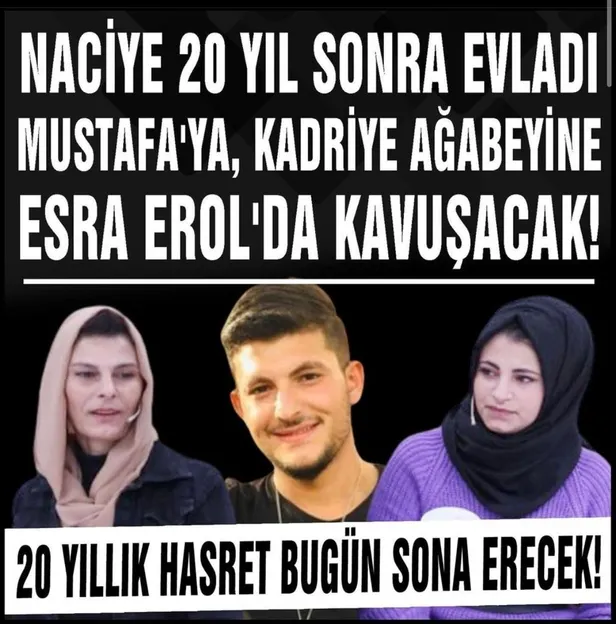 Naciye 20 yıl sonra evladı Mustafa'ya, Kadriye ağabeyine Esra Erol'da kavuşacak! 20 yıllık hasret bugün sona erecek!