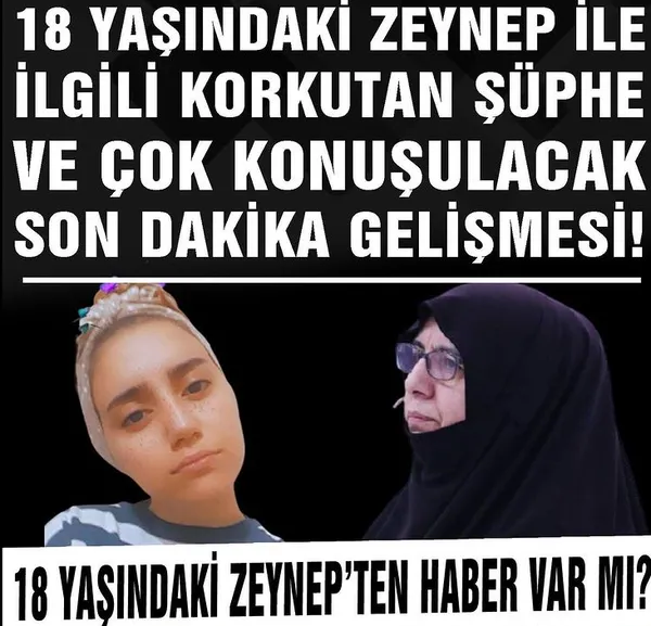 18 yaşındaki Zeynep ile ilgili korkutan şüphe ve çok konuşulacak son dakika gelişmesi! 18 yaşındaki Zeynep'ten haber var mı?