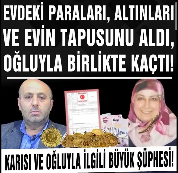 Evdeki paraları, altınları ve evin tapusunu aldı, oğluyla birlikte kaçtı! karısı ve oğluyla ilgili büyük şüphesi!