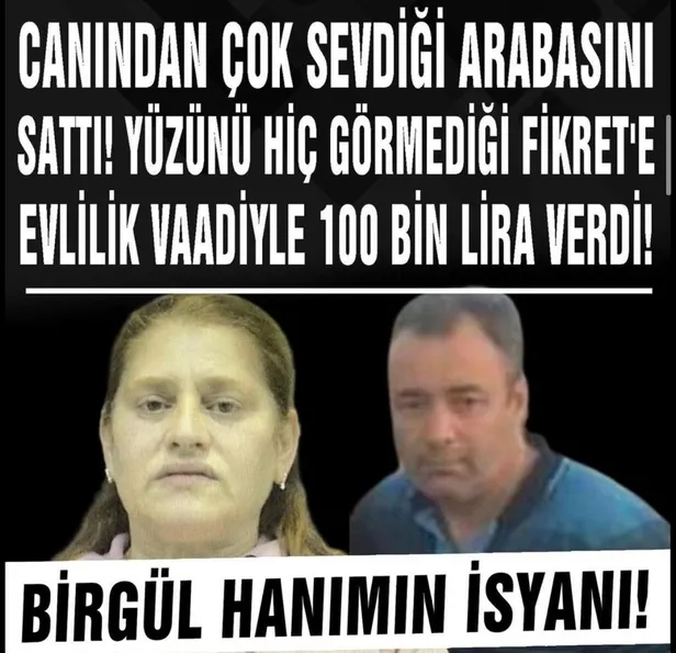 Canından çok sevdiği arabasını sattı, yüzünü hiç görmediği Fikret'e evlilik vaadiyle 100 bin lira verdi! Birgül Hanım'ın isyanı!