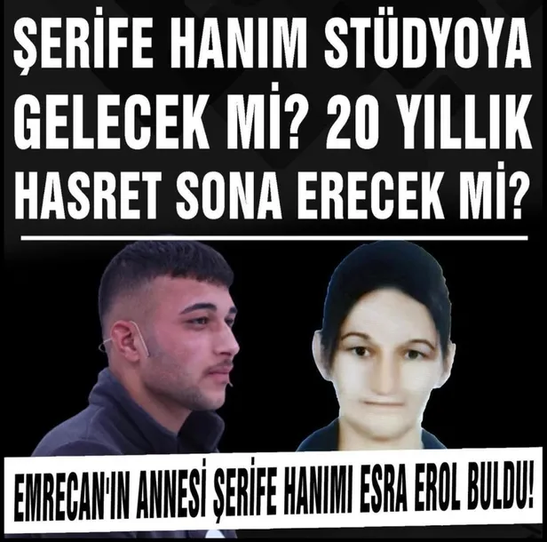 Bir mucize gerçek oldu! 20 yaşındaki Emrecan'ın annesi Şerife Hanım'ı Esra Erol buldu! Şerife Hanım stüdyoya gelecek mi? 20 yıllık hasret sona erecek mi?