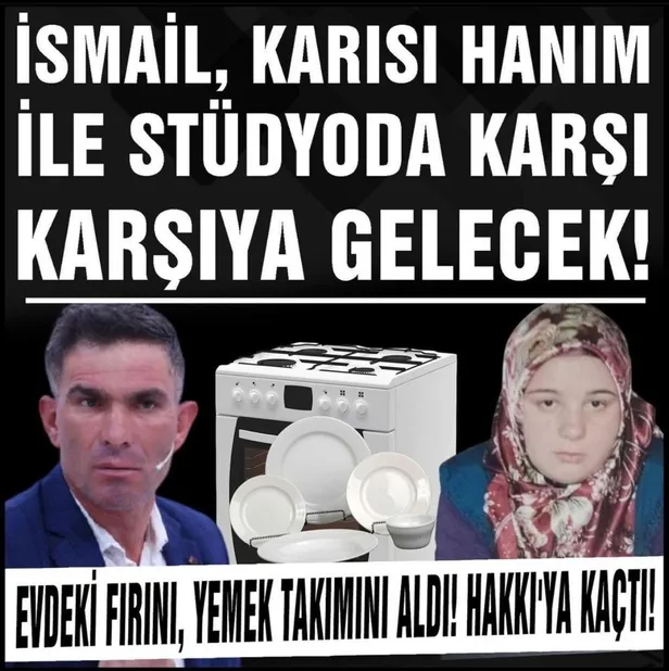 İsmail, karısı Hanım ile stüdyoda karşı karşıya gelecek! Evdeki fırını, yemek takımını aldı Hakkı'ya kaçtı!