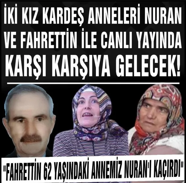 İki kız kardeş anneleri Nuran ve Fahrettin ile canlı yayında karşı karşıya gelecek! "Fahrettin 62 yaşındaki annemiz Nuran'ı kaçırdı" iddiası gündeme bomba gibi düştü.
