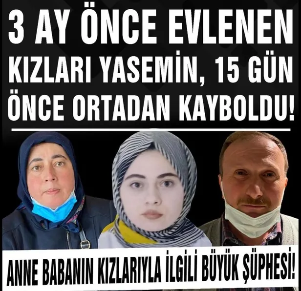 3 ay önce evlenen kızları Yasemin, 15 gün önce ortadan kayboldu! Anne ve babanın kızlarıyla ilgili büyük şüphesi!