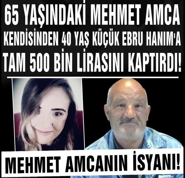 65 yaşındaki Mehmet amca kendisinden 40 yaş küçük Ebru hanım'a tam 500 bin lirasını kaptırdı! Mehmet amcanın isyanı!