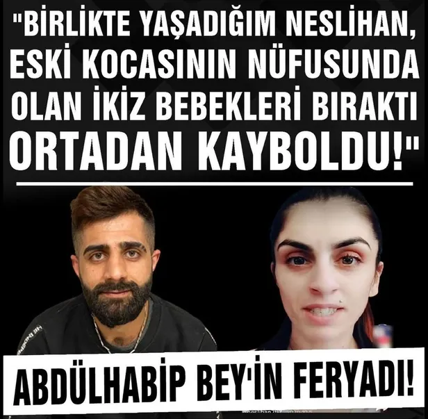 "Birlikte yaşadığım Neslihan, eski kocasının nüfusunda olan ikiz bebekleri bıraktı ortadan kayboldu!" İkiz bebeklerle yapayalnız kalan ve Neslihan'ın ailesinin desteğiyle ayakta durmaya çalışan Abdülhabip Bey'in feryadı!