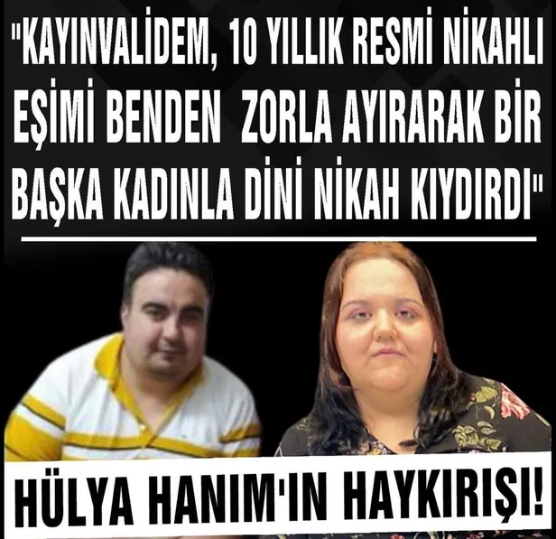 "Kayınvalidem, 10 yıllık resmi nikahlı eşimi benden zorla ayırarak bir başka kadınla dini nikah kıydırdı" diyen Hülya Hanım'ın haykırışı!