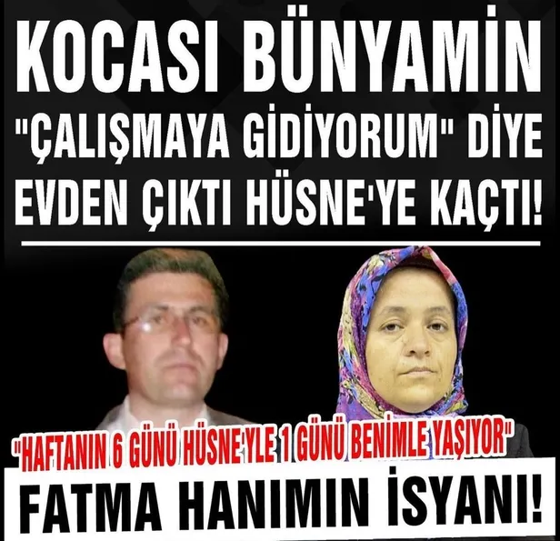 Kocası Bünyamin "Çalışmaya gidiyorum" diye evden çıktı Hüsne'ye kaçtı! "Haftanın 6 günü Hüsne'yle 1 günü benimle yaşıyor" diyen Fatma Hanımın isyanı!
