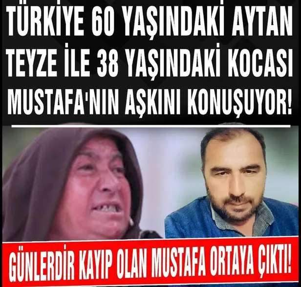 Türkiye 60 yaşındaki Aytan Teyze ile 38 yaşındaki kocası Mustafa'nın aşkını konuşuyor! Günlerdir kayıp olan Mustafa ortaya çıktı!