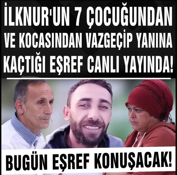 İlknur'un 7 çocuğundan ve kocasından vazgeçip yanına kaçtığı Eşref canlı yayında! Bugün Eşref konuşacak!