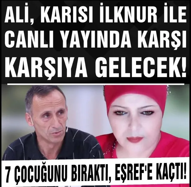 Ali, karısı İlknur ile canlı yayında karşı karşıya gelecek! 7 çocuğunu bıraktı, Eşref'e kaçtı!