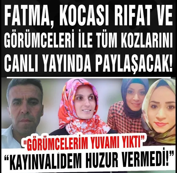 "Görümcelerim yuvamı yıktı, kayınvalidem huzur vermedi!" diyen Fatma, kocası Rıfat ve görümceleri ile tüm kozlarını canlı yayında paylaşacak!
