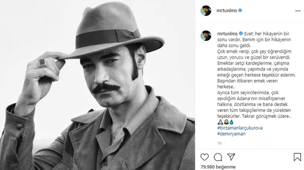 Bir Zamanlar Çukurova'daki performansı sayesinde geniş yelpazede bir kitlenin takdirini ve beğenisini toplayan Murat Ünalmış, dizideki yolculuğunun noktalandığını şu sözlerle duyurdu: