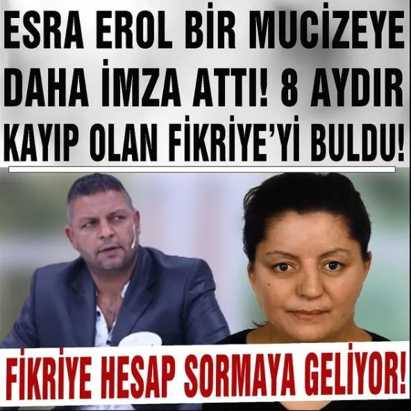 ESRA EROL BİR MUCİZEYE DAHA İMZA ATTI! 8 AYDIR KAYIP OLAN FİKRİYE'Yİ BULDU! FİKRİYE HESAP SORMAYA GELİYOR!