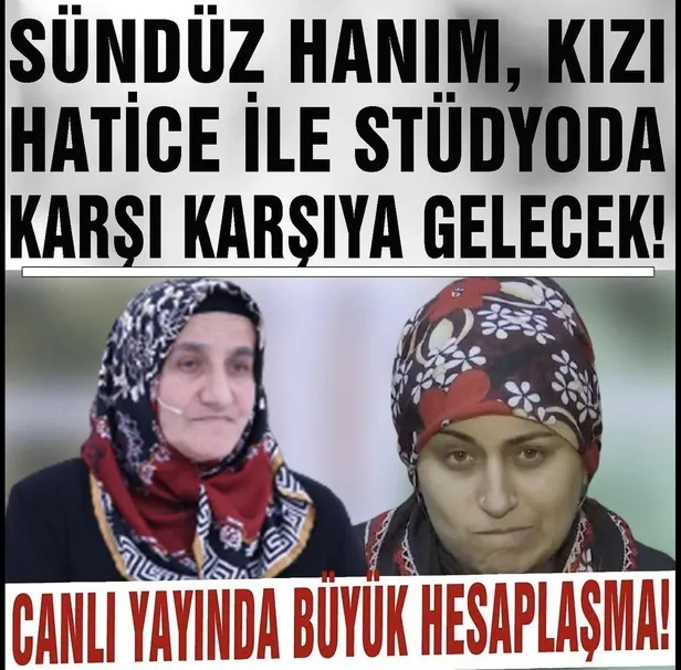 Sündüz Hanım, kızı Hatice ile stüdyoda karşı karşıya gelecek! Canlı yayında büyük hesaplaşma!