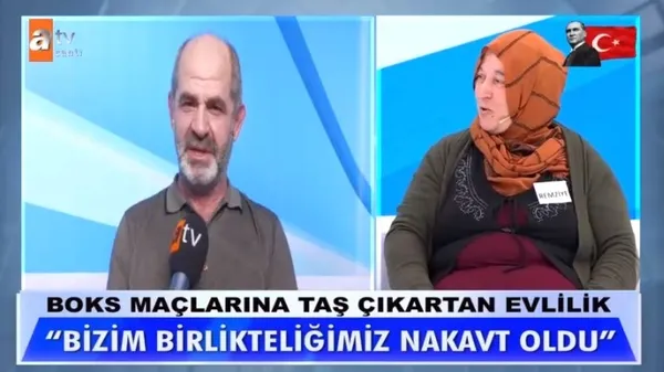 Müge Anlı'da ağızları açık bırakan olay! Kocasını dövdüğünü itiraf etti! Karısı Remziye'den dayak yiyen Esat'ın Müge Anlı canlı yayınında anlattıkları herkesi şaşkına çevirdi. Müge Anlı ile Tatlı Sert programına konuk olan Remziye Hanım, parasını alıp kaçan eşi Esat'ı nasıl dövdüğünü anlattı. Remziye Hanım, "Çivi elimdeydi hep çiviledim, kafa attım" dedi. Esat Bey ise "24 yıl çile çektim. Sopayla başladı kafa atmayla bitti" dedi.