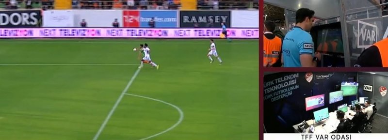 - Hakem Mehmet Türkmen ilk başta devam kararı verdi ancak VAR'dan gelen inceleme tavsiyesi üzerine kenara geldi.