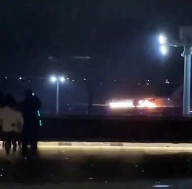 Sosyal medyaya yansıyan görüntülerde, uçağın, pistte taksi yaptığı esnada motor kısmında bir yangının patlama ile başladığı görülüyor.