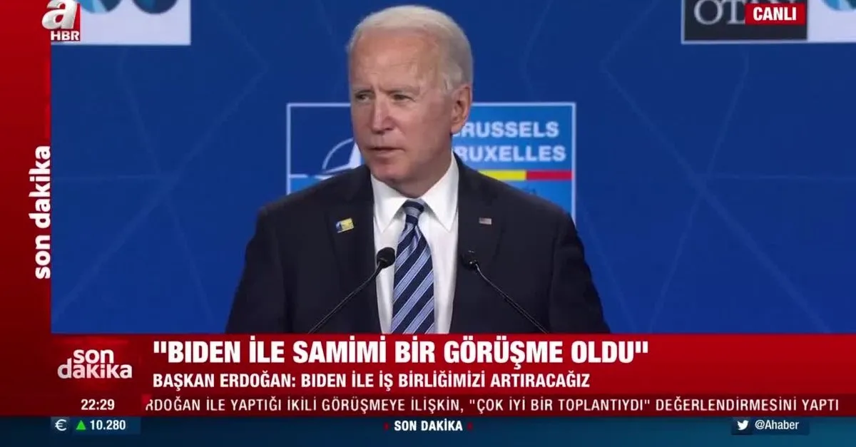 ABD Başkanı Joe Biden, NATO Liderler Zirvesi kapsamındaki temaslarının ardından açıklamalarda bulundu. Başkan Erdoğan ile gerçekleştirdiği görüşme ile ilgili değerlendirmede bulunan Biden, "Erdoğan ile çok verimli bir görüşme gerçekleştirdik. Türkiye ile anlamlı bir ilerleme kaydedeceğiz." diye konuştu.