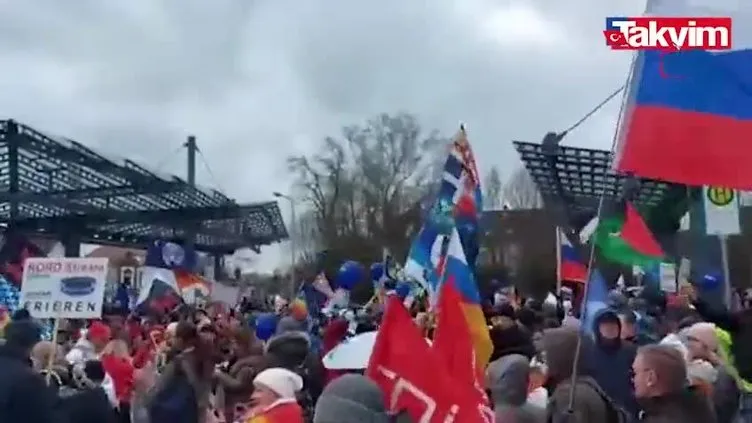 ABD'nin Almanya'daki hava üssünde protesto! Binlerce kişi "Amerikalı evine git" sloganı attı