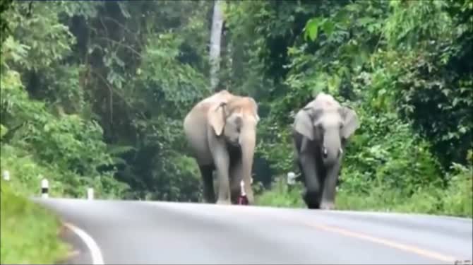 Tayland’da Khao Yai Ulusal Parkı’ndaki fil sürüsü yoldan geçen bir motosikletlinin üzerine yürüdü. Korkudan motosikletinden inen sürücü fillerin öfkesi karşısında çareyi dua etmekte buldu.
