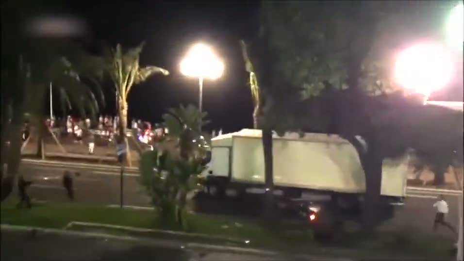 Fransız polisi terör saldırısı gerçekleştiren kamyon kaçarken arkasından koşarak ve ateş açarak durdurma çabaları kameraya yansıdı. Kamyonun ön camının kurşun geçirmez olduğu şüphesi dile getiriliyor.