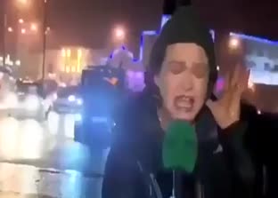 Irma kasırgasında muhabirin suratına tabela çarptı