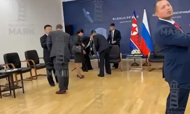 Putin ve Kim'in görüşmesi başlamadan önce ekipler hazırlık yaparken Kim Jong-un'un oturacağı koltuk defalarca kontrol edildi. Rus ve Kuzey Koreli yetkililerin koltuğa karar verememesi bir de Rus diplomatın Putin'in koltuğuna oturup test etmesi gündeme damga vurdu.