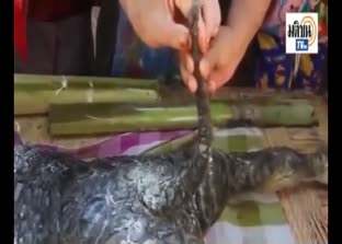Tayland'da bir köyde manda tarafından dünyaya getirilen ancak kısa süre sonra ölen buzağının görüntüsü, şaşkına çevirdi. Tayland'ın uzak bir dağ köyünde mandanın dünyaya getirdiği buzağı şoke etti. Toynaklarıyla mandayı andıran, pullu derisiyle timsaha benzeyen gizemli yaratık, köylüleri dehşete düşürdü. Ancak yavru, doğduktan kısa süre sonra telef oldu.