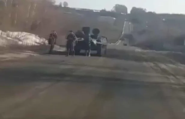 Yolda giderken Rus askeri konvoyu ile karşılaşan Ukrayna vatandaşı askerlere tankları işaret ederek"Bozuldu mu?" dedi. Bunun üzerine tankların yakıtının bittiğini belirten Rus askerine cevap veren Ukrayna vatandaşı,"Tankları Rusya'ya geri çekelim o zaman. Nereye gittiğinizi biliyor musunuz? Sizinkiler esir alınıyor. Onlar da nereye gittiğini bilmiyorlar. Sizin ekipten diğerlerine de sordum sizden hiç kimse nereye gittiğini bilmiyor" şeklinde ifadeler kullanarak konvoyun yanından ayrıldı.