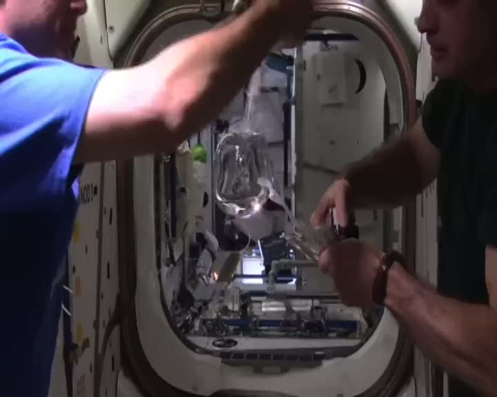 Uzay istasyonunda inanılmaz su topu gösterisi