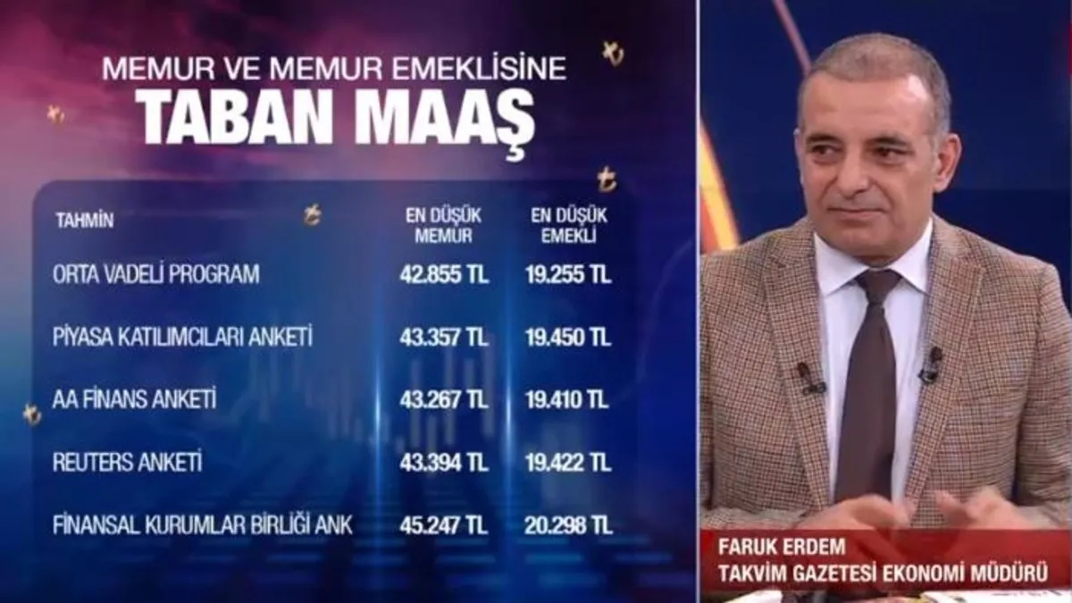 Ekim ayı enflasyon verilerinin açıklanmasıyla birlikte, memur ve emekli maaşlarına yapılacak zam oranı gündemde. Aylık TÜFE %2,88, yıllık TÜFE %48,58 olarak gerçekleşti. 4 aylık SSK ve BAĞ-KUR emekli zammı %12,06 olarak belirlendi. Takvim Gazetesi Ekonomi Müdürü Faruk Erdem, en düşük memur maaşının 43 bin TL'yi, emekli maaşının ise 19 bin TL'yi geçebileceğini, refah payı ve dengeleme gelirse bu rakamların daha da artabileceğini belirtti.