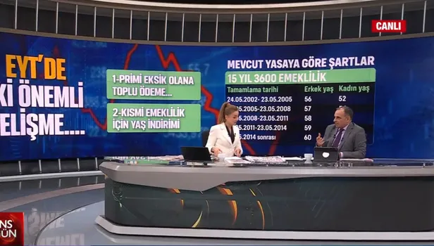 EYT ile ilgili son gelişmeler yaşanmaya devam ediyor. Milyonların heyecanla beklediği düzenlemenin ayrıntıları netleşiyor. Bakan Bilgin, 1.5 milton kişinin hemen, kalanların ise şartları sğlandığında emekli olacağını ifade etti. Bilgin, "İki şartı kaldırmıyoruz: Prim gün sayısı ve yıl sayısı. Kadınlar için 20, erkekler için 25 şartını yerine getirdikleri zaman onlar da bundan istifade edecekler." dedi. Peki, EYT'de son durum ne? Kimler EYT'li sayılacak? İşte EYT'den yararlanma şartları haberimizde!