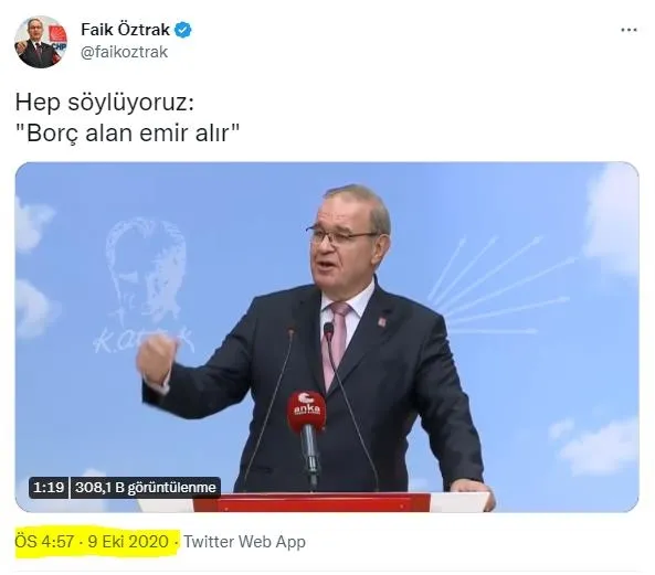 Kemal Kılıçdaroğlu'nun verdiği "IMF'ten borç alacağım" sinyali, CHP Sözcüsü Faik Öztrak'ın geçtiğimiz yıllarda yaptığı açıklamayı da akıllara getirdi. Öztrak, "Hep söylüyoruz: 'Borç alan emir alır'" ifadelerini kullanmıştı.