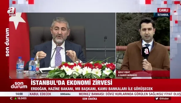 Son dakika ekonomi haberleri... Başkan Recep Tayyip Erdoğan, Hazine ve Maliye Bakanı Nureddin Nebati, Merkez Bankası Başkanı Şahap Kavcıoğlu ve kamu bankaları genel müdürleriyle bir görüşme yapacak. Öte yandan Merkez Bankası dövize dördüncü kez doğrudan müdahale etti. Açıklamada "Döviz kurlarında görülen sağlıksız fiyat oluşumları nedeniyle piyasaya satım yönünde doğrudan müdahale edilmektedir" denildi.