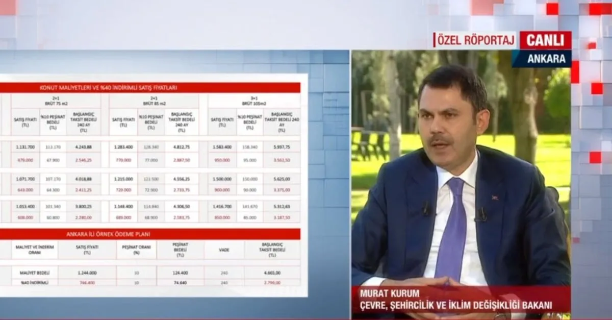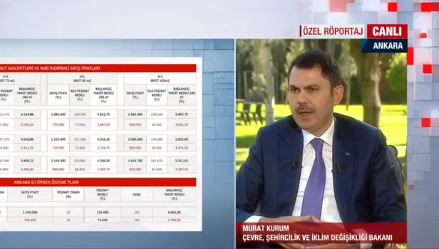Son dakika haberleri... Başkan Recep Tayyip Erdoğan'ın müjdesinin ardından vatandaşlardan büyük ilgi gören cumhuriyet tarihin en büyük projesi TOKİ sosyal konut, rekor üstüne rekor kırmaya devam ediyor. A Haber canlı yayınında Rüya Akkuş'un konuğu olan Çevre Şehircilik ve İklim Değişikliği Bakanı Murat Kurum, ucuz sosyal konut ile ilgili merak edilenleri anlattı. "Konut fiyatı şerefiyeye göre belirlenecek" ifadelerini kullanan Bakan Kurum "Kura ile belirleneceği için müdahale söz konusu değil." dedi.