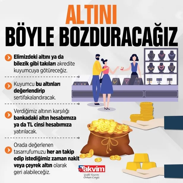 Hazine ve Maliye Bakanı Nureddin Nebati, 5 bin ton altının sisteme kazandırılması için devreye girecek yeni sistemi önceki gün açıklamıştı. Buna göre, fiziki altın, bankalar ve kuyumculara teslim edilebilecek. Vatandaş, ister bileziğini isterse de çeyrek altınını kuyumcuya götürecek. Vatandaşın fiziki altınını teslim ve çekim sürecinde mağduriyet yaşanmaması için rafineriler tarafından oluşturulacak teknolojik altyapı bankalar tarafından da doğrulama altyapıları ile desteklenecek.